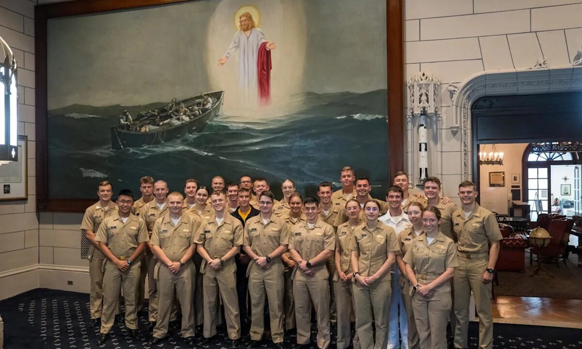 “Burying this historic painting in the basement wasn’t just a mistake—it was an insult to the faith and legacy of service that built this Academy and our nation,” Duffy said at the unveiling. “By restoring ‘Christ on the Water’ to its rightful place, we sent a clear message to our midshipmen: their Christian faith is a virtue to be proud of, not something to be censored.”