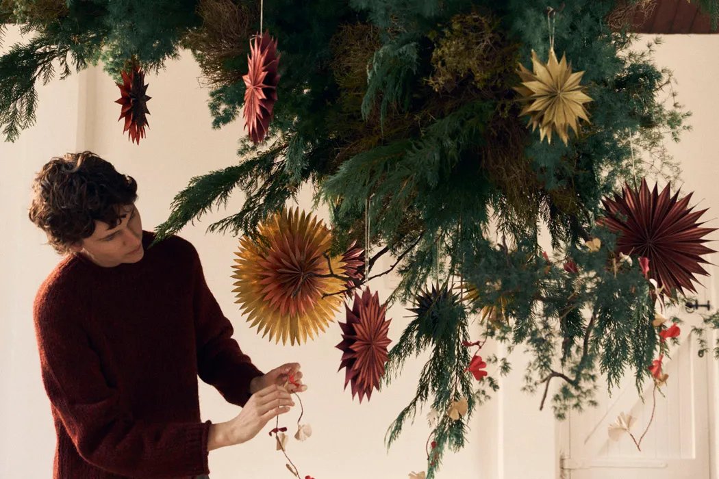 By using foraged branches and foliage, you can bulk out the design and intersperse with some of these Lokta Fair Trade paper hanging stars, handmade by artisans in the Kathmandu valleys of Nepal. Price €35, ex delivery, from Toast.