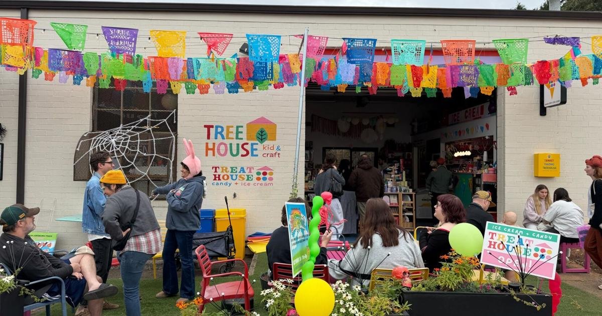 A towering air dancer made of ripstop nylon waved joyfully at the entrance, signaling that Little Joyfest had begun. On Sunday, Oct. 26 from 11 a.m. to 5 p.m., TREEHOUSE kid and craft hosted an outdoor market and mini festival filled with charms, crafts, art, trinkets, food and music. The Little Joyfest was held in the grounds behind the store and offered an array of events for community members of all ages.