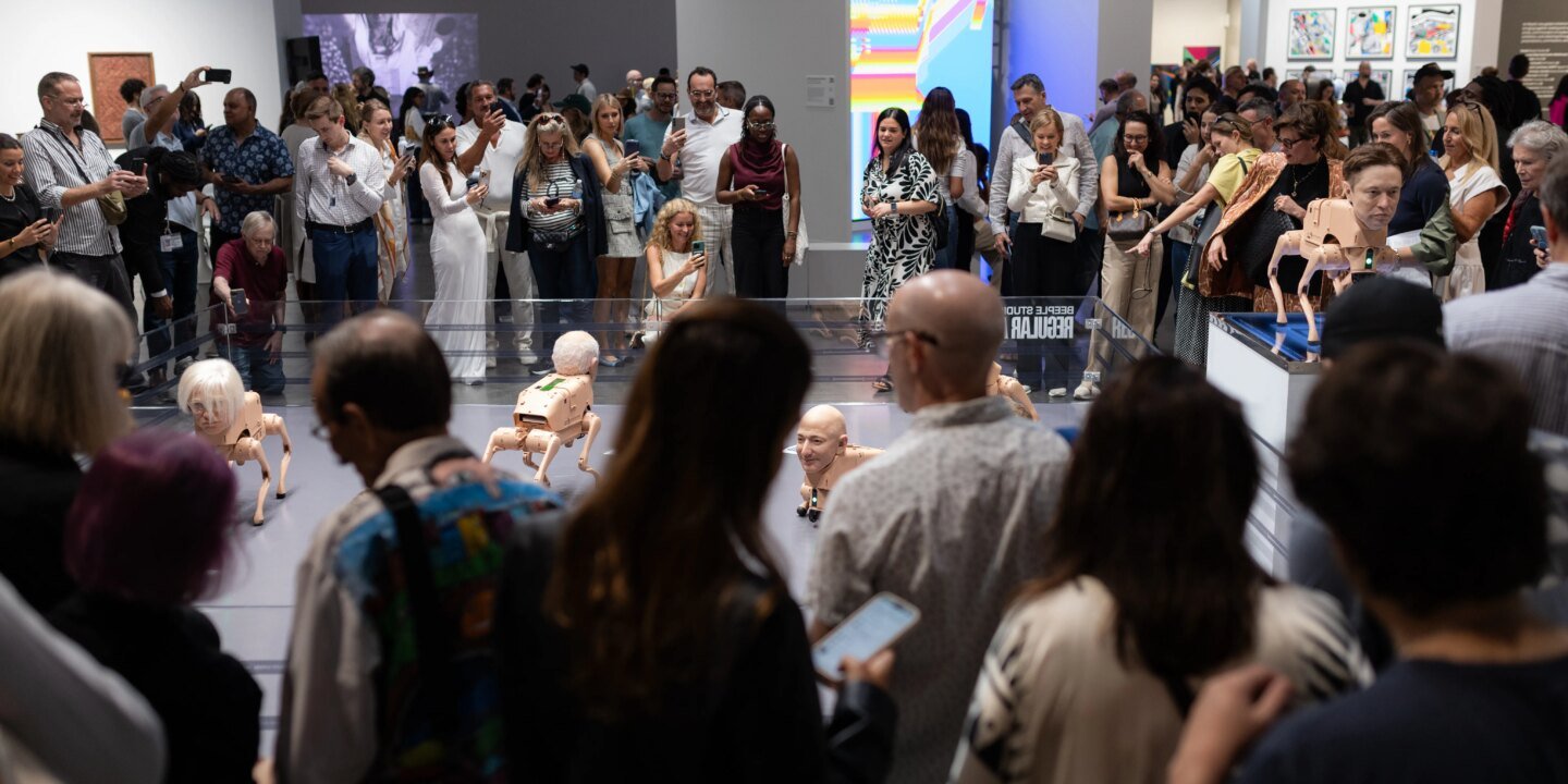 Beeple—a.k.a. Mike Winkelmann—had suspected the performance might go viral. When we spoke to him just after the fair, he said that when he’d shown different versions of the robotic dogs at studio events, audiences always responded strongly. Earlier this year, someone recorded one of those presentations, posted it online and the video quickly racked up views. Still, presenting the work at Art Basel Miami Beach propelled it far beyond the digital art community Beeple is a part of. “We knew it was getting traction, but we had no idea it was about to blow up to the point where it would be on global news and literally live on CNBC the next day,” he told Observer. “Every outlet picked it up—Wall Street Journal, Washington Post, everyone. We had no way of expecting that. It wasn’t like, ‘Oh yeah, today’s the day this is going to explode.’”