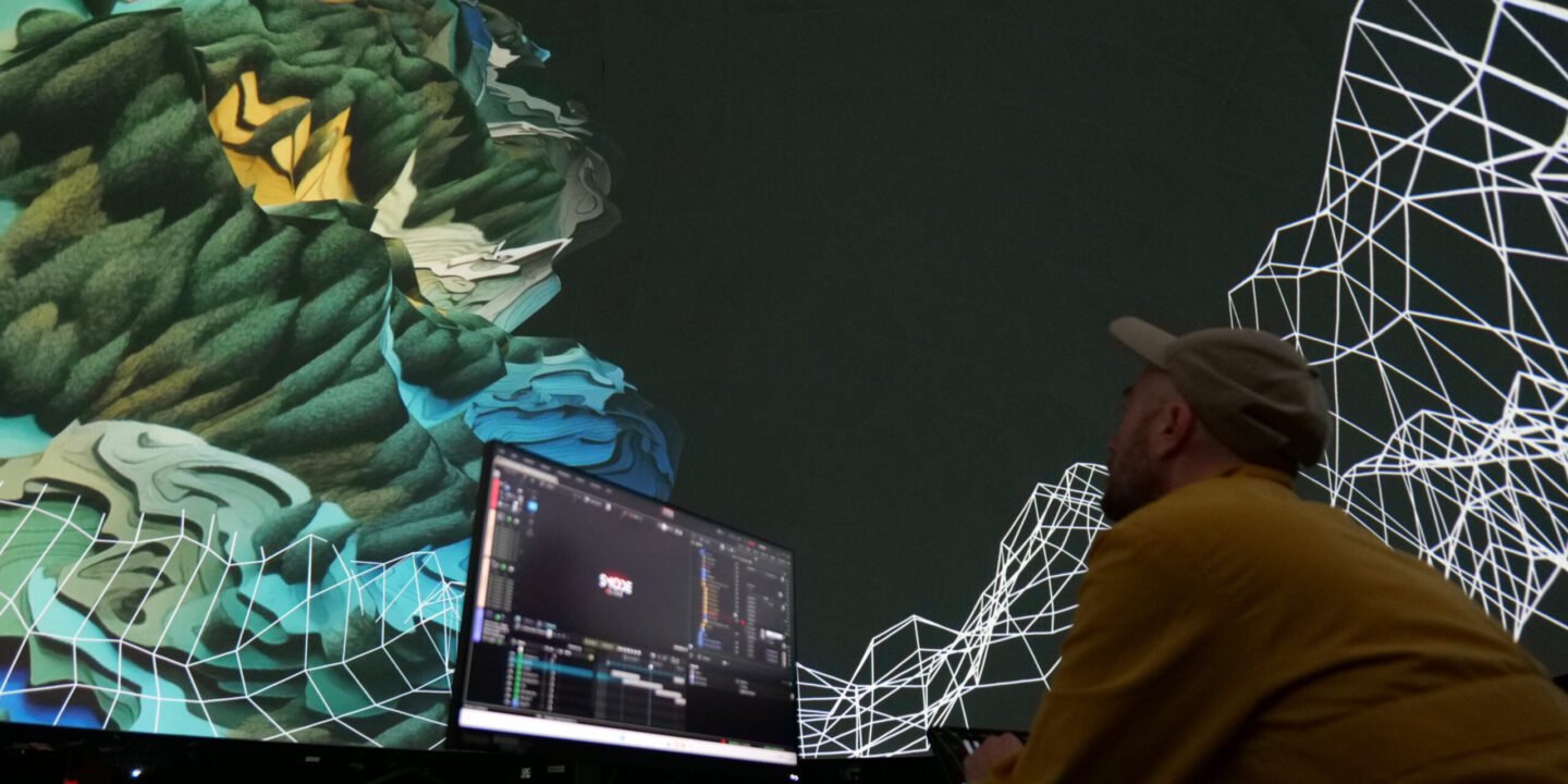 Yannick Moréteau explained: “In a dome, working with real-time generative content is essential. You need to be able to adjust perspectives on the spot; drawing a straight line in a hemisphere is quite a challenge!