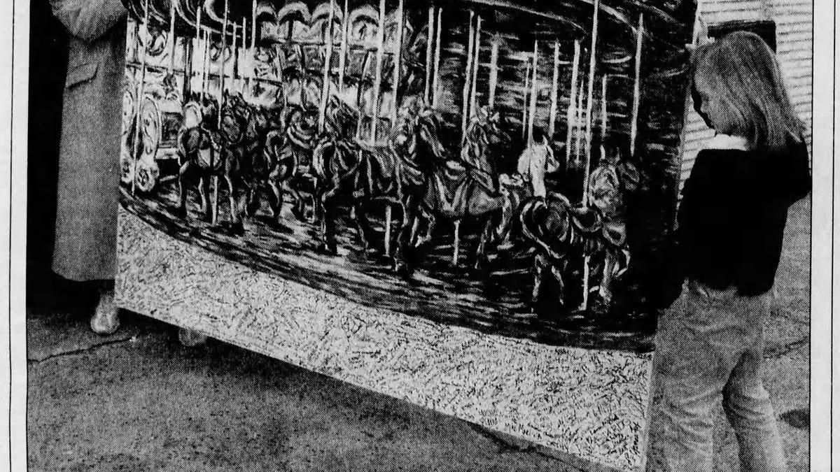 “Glory Days” — a large acrylic painting depicting Asbury Park’s old Palace Amusements carousel — will be auctioned off beginning today to raise money for local victims of the Sept. 11 terrorist attacks.