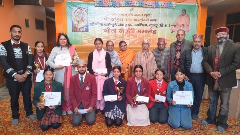 Ridhima of La Montessori School, Dhalpur, secured first place in the declamation contest, while Bhuvnesh of Trinity School, Mohal, won the painting competition held during the 35th Gita Jayanti Samaroh at Gita Ashram, Ramshila, on Friday. Both were honoured with a certificate, a memento and cash prizes of Rs 3,100 and Rs 2,001, respectively. Sanskriti of Saraswati Vidya Mandir, Bashing, claimed second position in the declamation contest with a prize of Rs 2,100, while Ishita of Bharat Bharati School, Dhalpur, stood third, receiving Rs 1,100. The declamation contest saw participation from 42 students representing 26 schools across the valley. In the painting competition, Parvina of PM SHRI GSSS, Sultanpur, secured second place with Rs 1,501, while Sanvika of Kullu Valley School, Akhara, stood third, earning Rs 1,001 among 39 contestants.