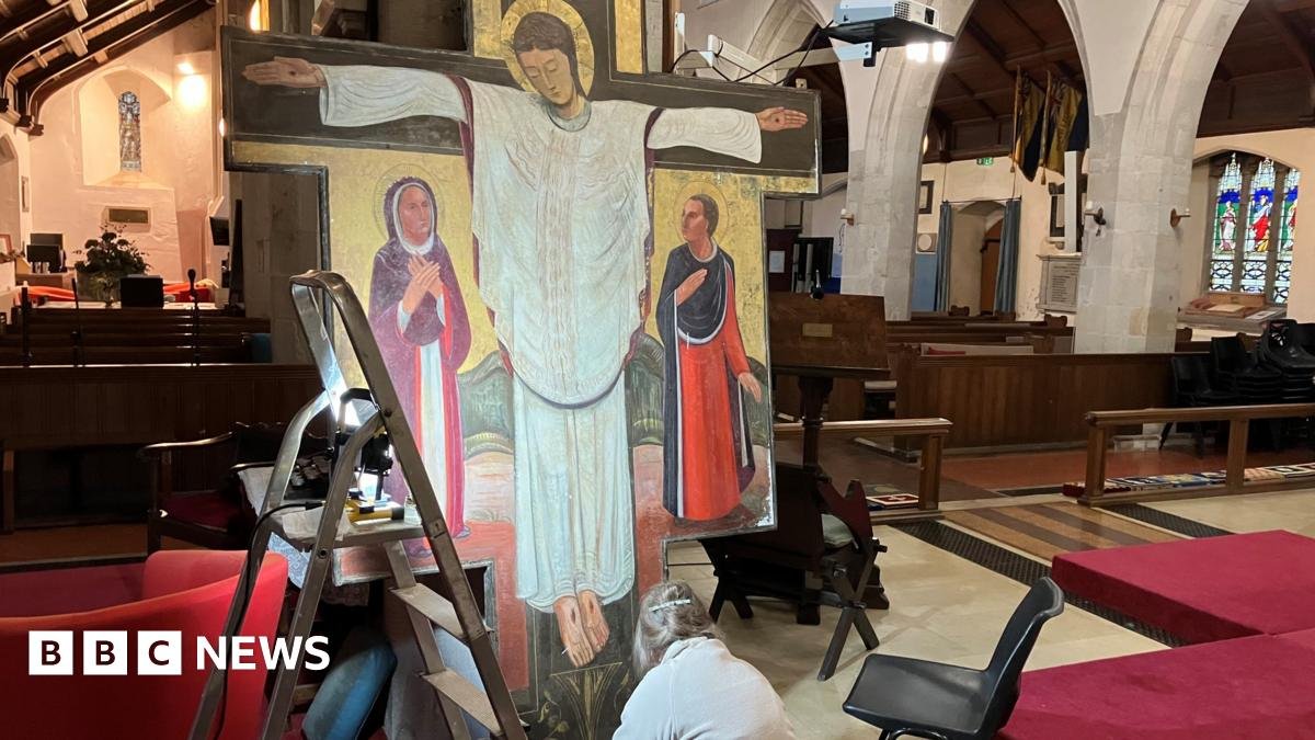 Paintings conservator Alison Smith said she had started first by replacing the linen along the rim and was now re-attaching the loose paint and touching up.