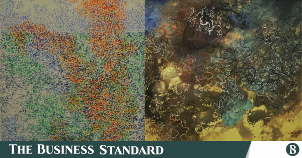 “I wanted to give form to silence through textures and shapes — tiny dotted patterns sharing the canvas with larger, softer blots,” she shares.