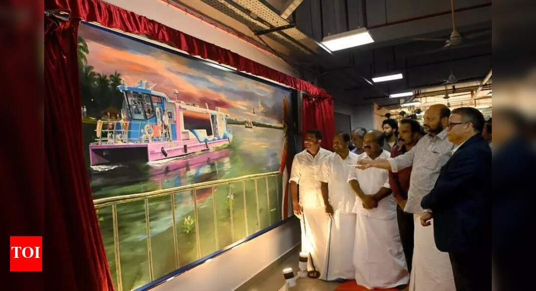 Kochi: A monumental fifteen-foot by six-foot painting of Kochi Water Metro, created by inspector of police A Ananthalal, now has a permanent home at High Court Water Metro terminal. Ananthalal, the first station house officer of Kochi Metro police station, spent a year completing the canvas. The painting shows a Kathakali artist looking out from the terminal, watching a Water Metro boat glide across Kochi’s waters — a blend of cultural tradition and urban transformation.For Ananthalal, the installation is a meaningful recognition of his work. “It was an honour and a stroke of luck, to have a permanent space in the terminal. I served in the city for nearly two decades and it feels special to see my painting displayed here,” he says. Much of the work was done while he was posted at state crime records bureau, with the canvas spread out in his residence and painted in short stretches whenever time allowed.Over the years, Ananthalal completed around 75 acrylic works, many depicting various aspects of police life — from community policing to officers in action. “Policing is a tough job, no doubt. Painting is like a little escape; it calms me down and helps me reset. Everyone has their own talents; not all of us can paint or sing. But when you spend time on what you love, it actually makes you better at what you do,” he says.The painting was unveiled by industries minister P Rajeeve at 6.45pm on Thursday. Adding to the evening’s cultural touch, a music video dedicated to Kochi Metro — also created by Ananthalal — was officially released. It features lyrics by Madhu Vasudev, composition by Ritwik Chand and vocals by Sithara Krishnakumar.Ananthalal said support of Loknath Behera, former police chief and current managing director of KMRL, helped him turn the idea into reality. “This event marks a unique convergence of public infrastructure and artistic expression, celebrating Kochi’s progress through the lens of creativity. Water Metro encourages art and culture of Kerala,” said Behera.