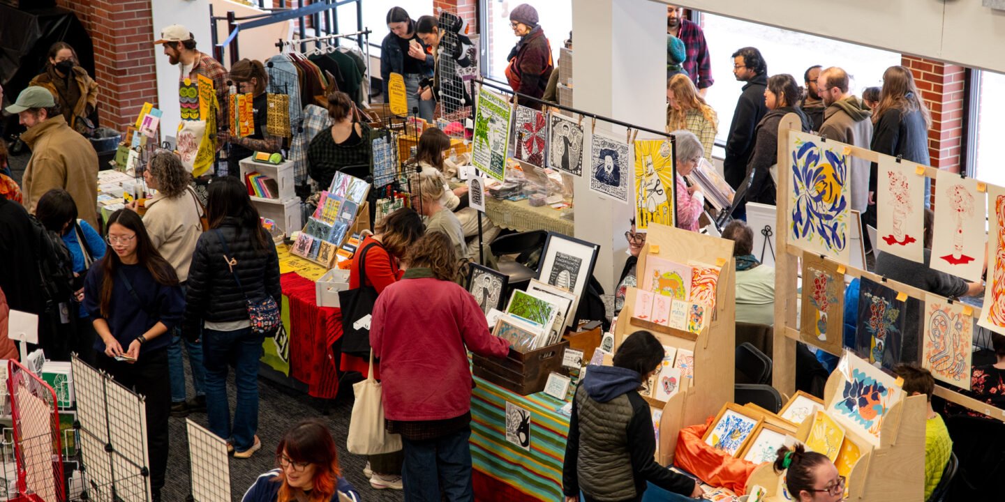 Printmaking is an ancient art form that allows artists to create multiple copies of original art or text through various methods, including screen printing, lithography, letterpress and block printing. At the festival, visitors were able to use a printing press or try their hand at paper marbling in hands-on workshops. In addition to the art displayed at vendor tables, the lower and third floors held exclusive exhibits from artists Ingrid Ankerson and Paloma Nuñez-Reguiero.