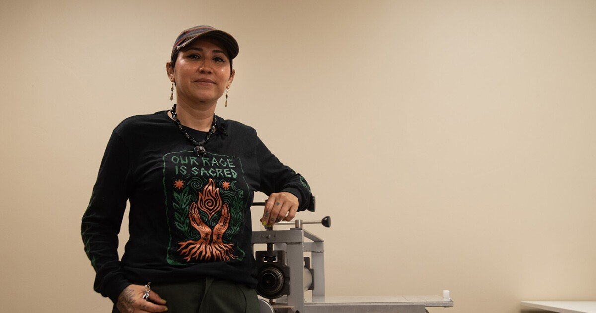 “Rasquache is a big — it’s a word that’s part of my community. It’s like, you make the most from the least,” Zepeda said. “And I think printmaking is very much that. It even is rooted as a form of resistance and resilience in the movement. It was an easier way for folks to make accessible posters and flyers to get their messages out there.”