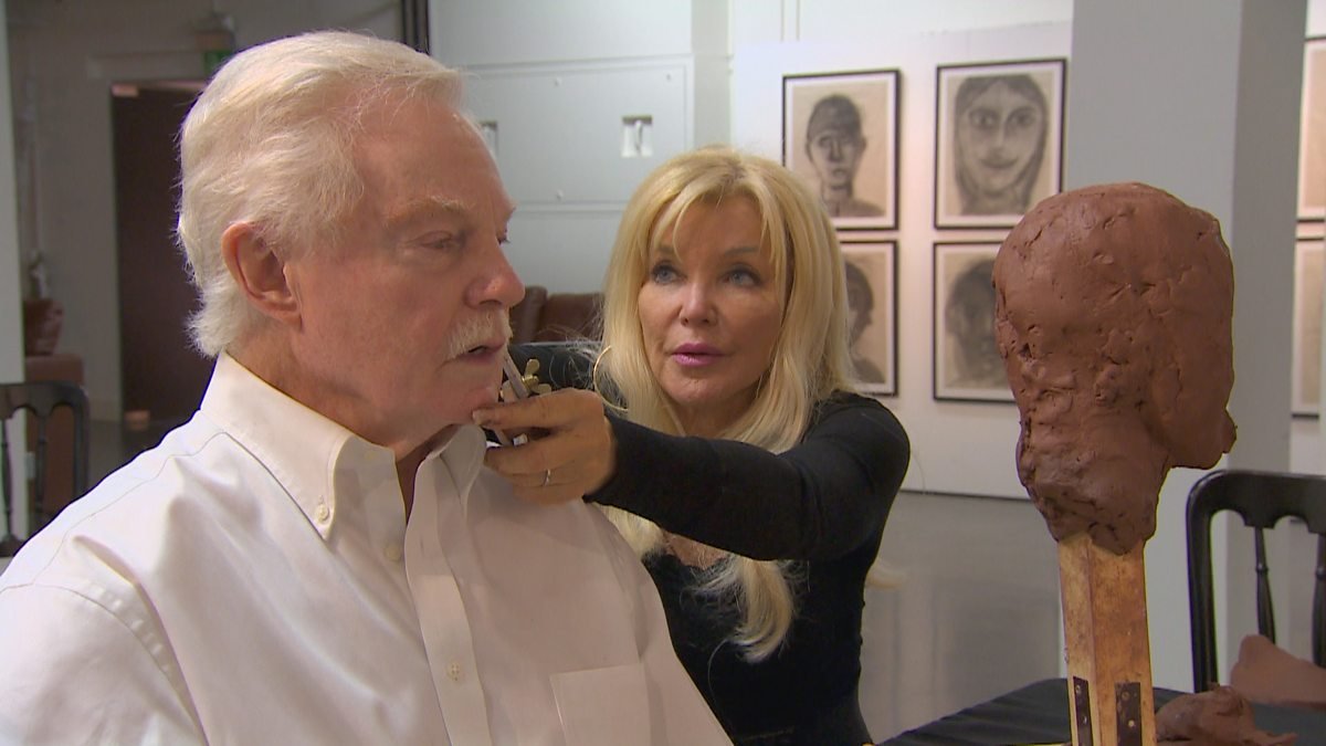 The process is this pressurised sculpture, so you need the person there. It’s very very important. You cannot do a sculpture without the life sitter. Every single photograph he looks so different, so I haven’t got a clue how his structure is. Basically it will take me months from a photograph, whereas from doing it from life is something you can see more clearly and you can turn it round and see it from the side. It’s, it’s vital.