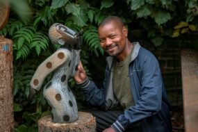 Hale took a risky approach by raku firing his ceramic sculptures. The raku firing technique is unpredictable and can often result in the ceramics being destroyed. When the technique is successful, it removes oxygen from the clay, giving the piece a matte black color, as seen in Hale’s Jazz Band sculptures.