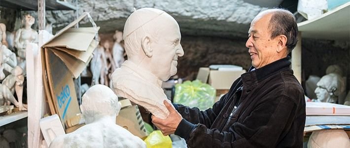 Okumura Nobuyuki is the first Japanese artist to produce a bronze bust of a pope for display at the Vatican. He has dedicated statues of three popes to the Vatican to date. We met with him in his studio near Rome to ask him about the development of his art that has brought him to where he is today.