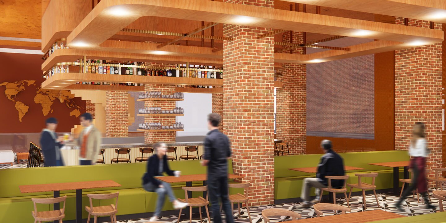 Also featured is a healing centre designed to promote wellbeing through exposure to white noise and a multiethnic restaurant that provides space for chefs to share their cultural heritage through food.