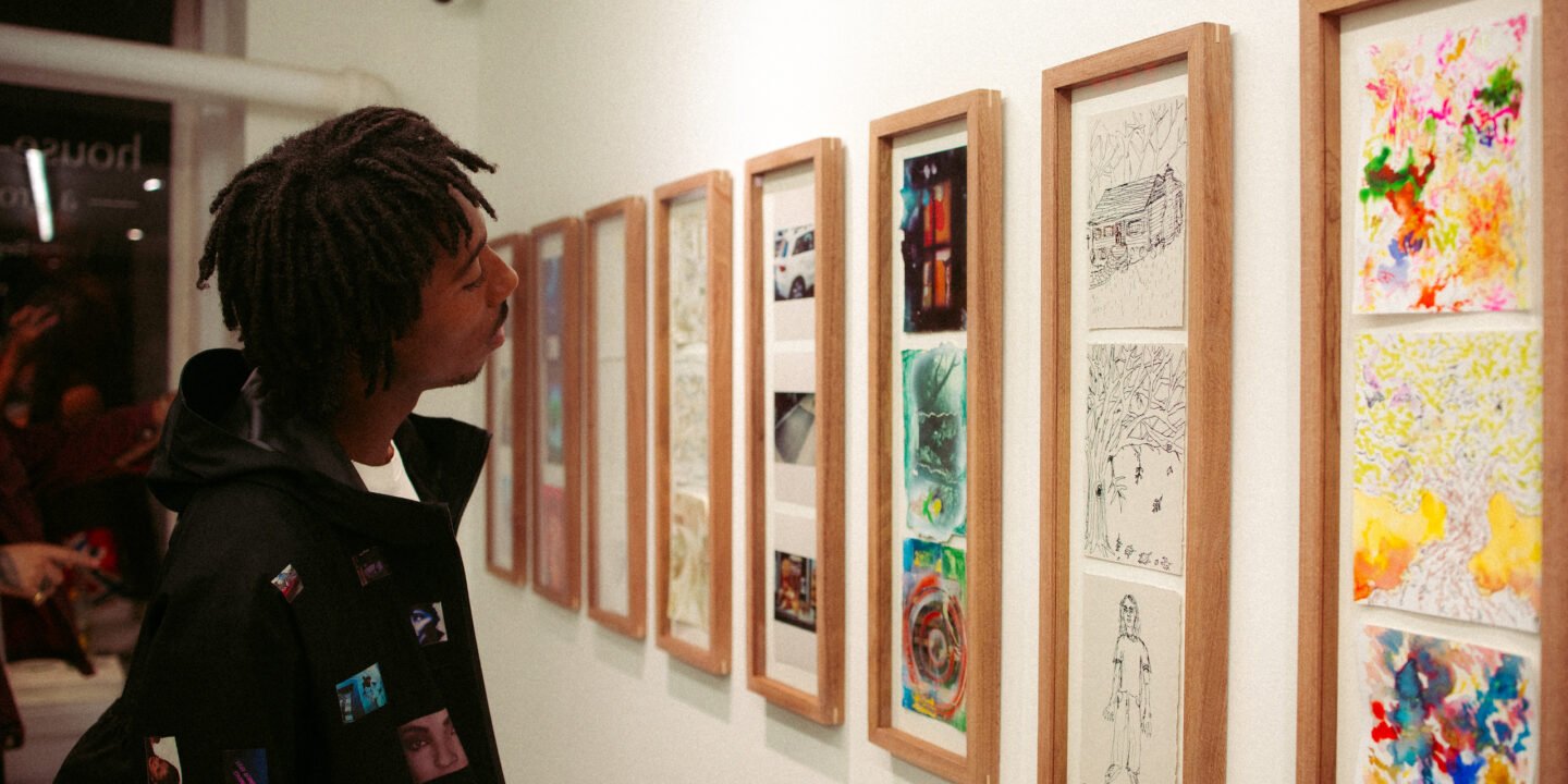 “H-T-P lends itself well to a group exhibition,” Soprano explained, given the test’s inherent flexibility. The exhibition has an easy tidiness; each work is displayed in uniform frames, the prompt responses arranged vertically. Maith Logan’s watercolor and graphite “house” is, in part, a person — a feminine figure encircled by trees, located “where you’re at peace,” a note says. (What good is a home without an inhabitant to protect?)
